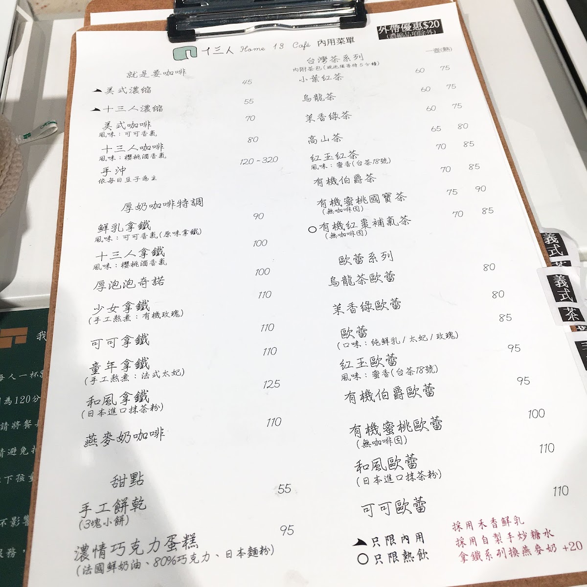 Welcome to 十三人 Home 13 Café, a delightful gem nestled in the bustling Banqiao District of New Taipei City. Renowned for its impeccable coffee, this cozy café offers an exquisite menu where each sip tells a story. The standout item, the 十三人花果咖啡, combines rich flavors for a perfect blend that pairs beautifully with local treats like the 瓶裝西摩利餅乾.